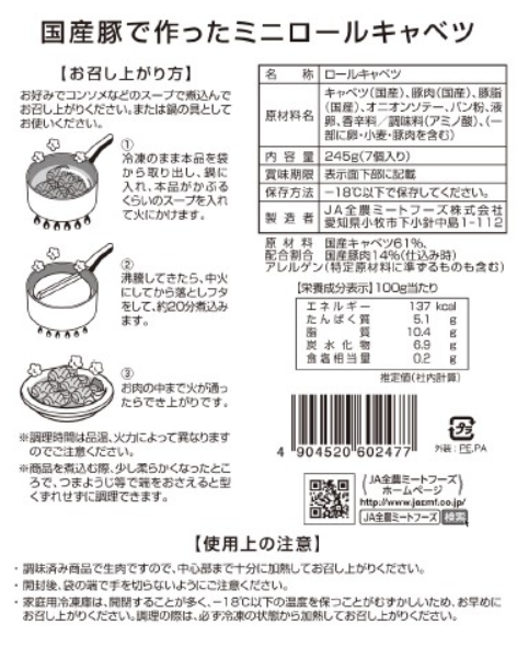 国産豚で作ったミニロールキャベツ245g(7個入り)×5パック