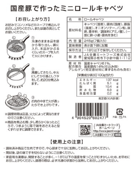 国産豚で作った惣菜シリーズ!お肉も野菜も国産使用!国産豚で作ったミニロールキャベツ!