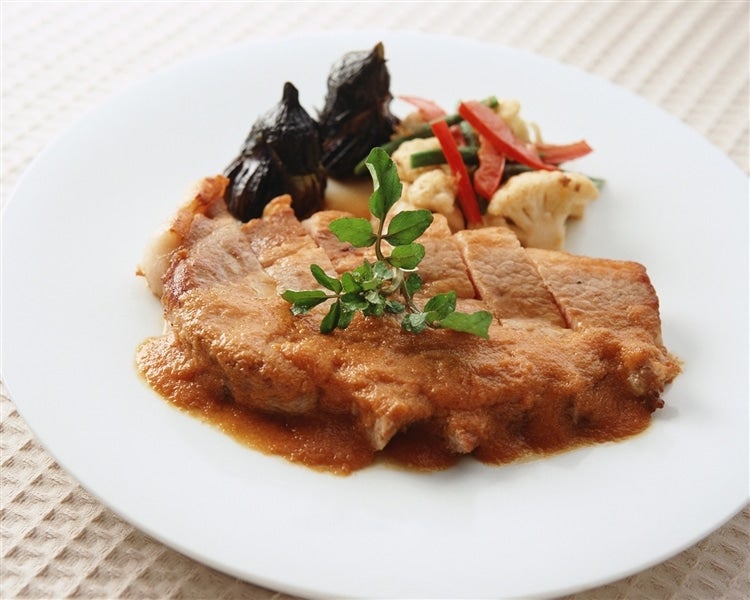 豚肉(国産)、みそ(大豆、米、食塩)、もろみ(大麦、米、食塩、大豆、小麦)、黒糖ぶどう糖液糖、にんにく調味液(にんにく、醸造酢、食塩、還元水あめ、しいたけエキス、蛋白加水分解物、酵母エキス)、ごま油/酒精、酸味料、調味料(アミノ酸等)、パプリカ色素、(一部にりんご・豚肉・小麦・ごまを含む)