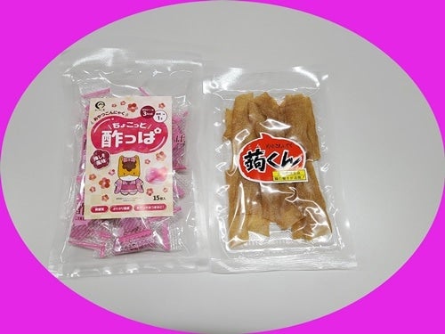 こんにゃくのプリッとした食感を出し、漬け込み液の無いタイプのおやつこんにゃくに仕上げました。しその風味と酸味でさっぱりとした味をいつでもどこでも手軽にお召し上がりいただけます。
