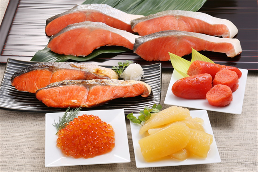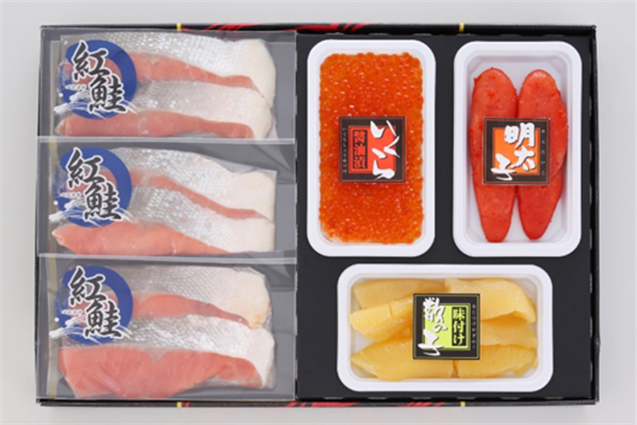 紅鮭の切身と魚卵3種を詰合せたセットです。