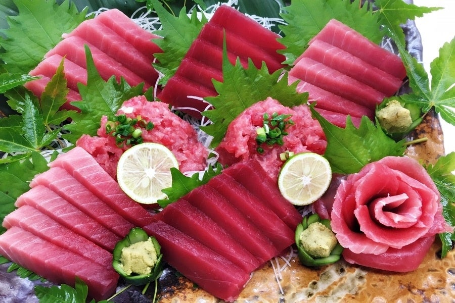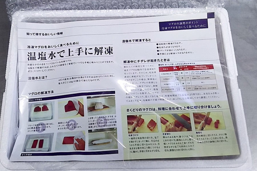 原料は、サクと同じめばちまぐろと、天然の本マグロを使用しています。