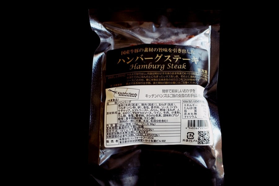 食肉〔牛肉(国産)、豚肉(国産)〕、玉ねぎ(国産)、つなぎ(パン粉、卵)、食塩、香辛料、ソース〔トマトケチャップ、トマトペースト、みりん、野菜(玉ねぎ、人参、セロリ)、デミグラスソース、ワイン、牛肉、小麦粉、でん粉、食塩、香辛料/カラメル色素、調味料(アミノ酸等)、香辛料抽出物、クエン酸〕(一部に小麦・卵・乳成分・牛肉・豚肉・大豆を含む)