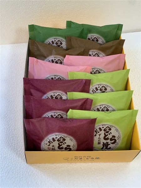 仙台名物こだまの生どら焼き。大納言・まっちゃ・いちご・ずんだ餅・チョコの5種類の詰め合わせギフト商品です。