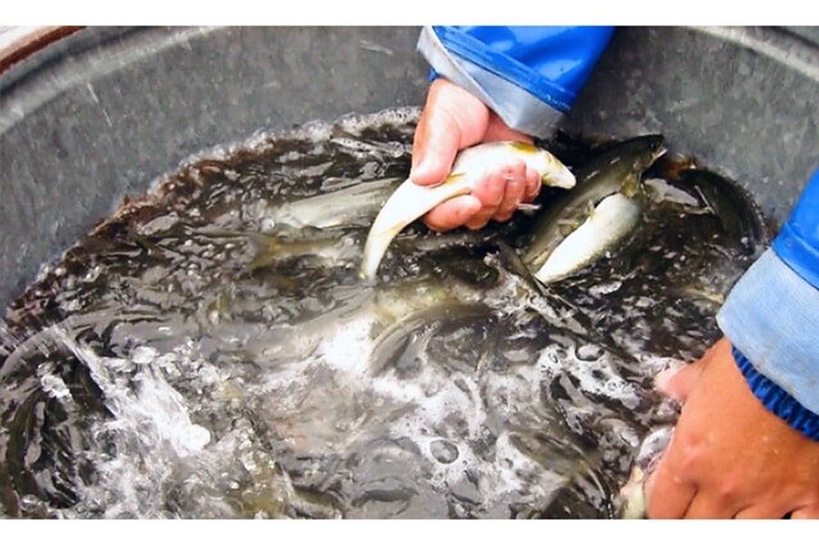 生鮎を氷絞めにして、その日のうちに急速冷凍します。