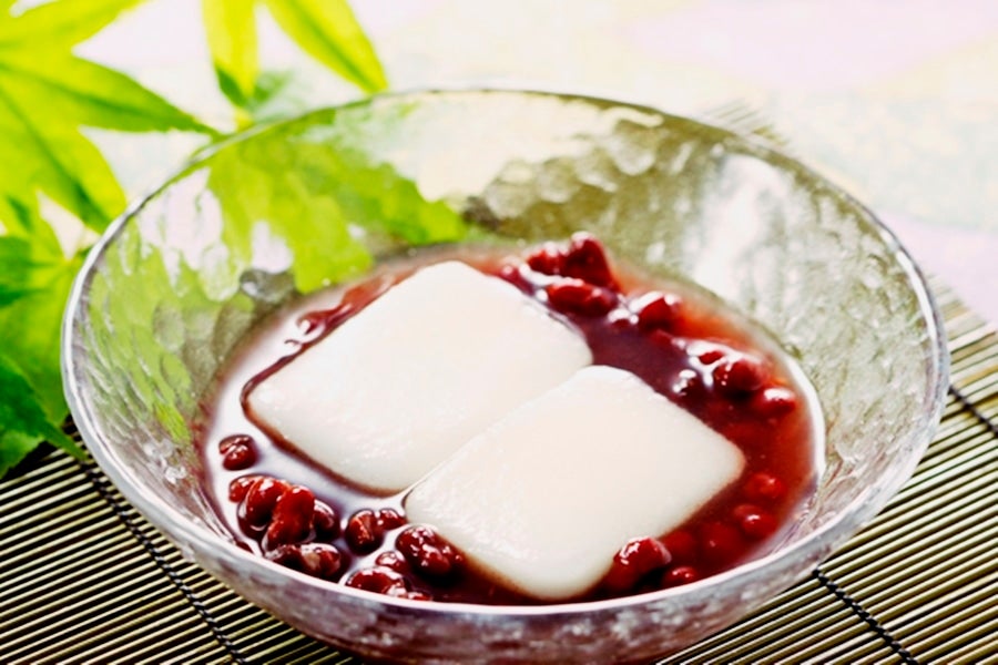 「冷やし」乾燥餅を重ならないように皿に並べて餅全体に30mlの水をかけ3分程度で柔らかくなります。冷蔵庫で冷やしたぜんざいを器に移し、戻した乾燥餅を入れてお召し上がりください。
