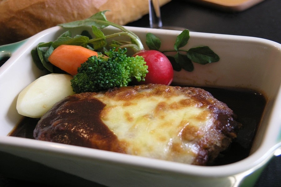 そのハンバーグにチーズをのせて絶妙なとろみがお口の中で広がります。またチーズをのせることによって一段とコクがでて上質な味わいとなっております。