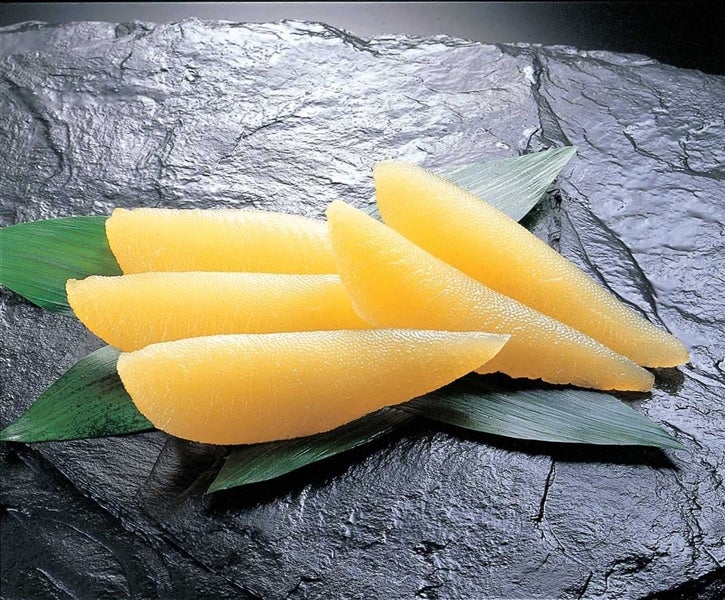 数の子はカナダまたはヨーロッパ産の味わい深い原料をかつおだしを隠し味とした醤油だれに丁寧に付け込みました。