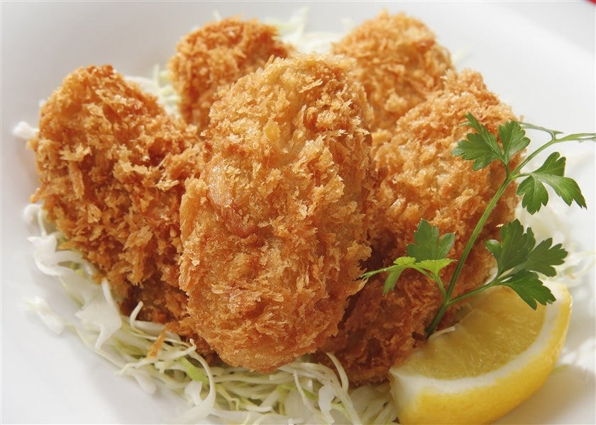広島は古来よりかきの養殖が盛んな地域で、県魚にあたるかきを厳格な管理の下に育てています。その広島県産にこだわった、旬の時期の丸々と太った原料を使用してかきフライに仕立てました。