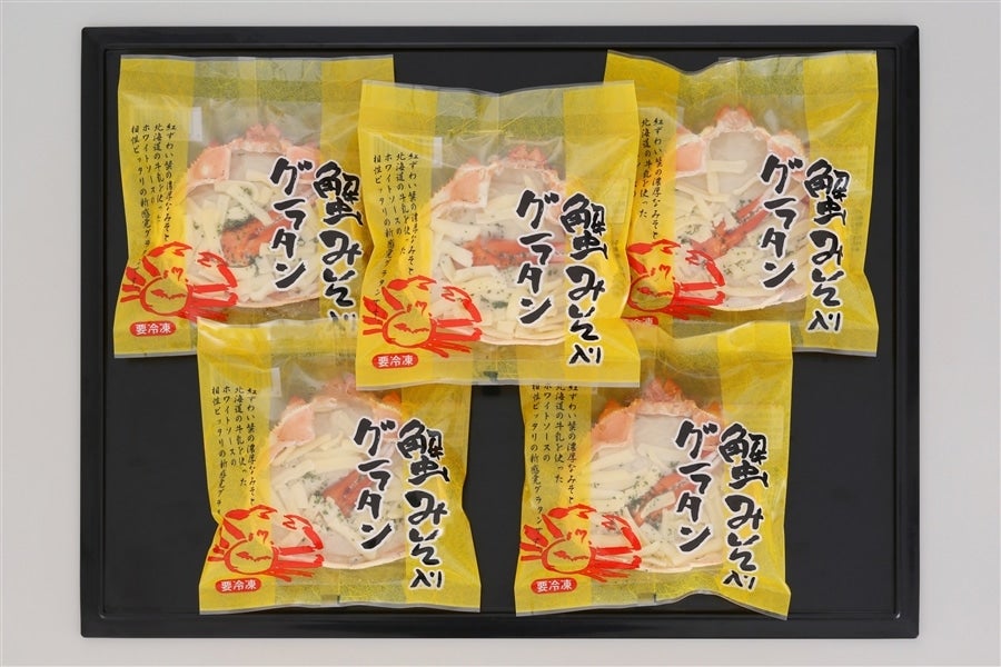 国産の紅ずわい蟹の身と濃厚なみそ、さらに北海道の牛乳を使ったホワイトソースとの相性がピッタリの新感覚グラタンです。蟹の爪もトッピングされています!