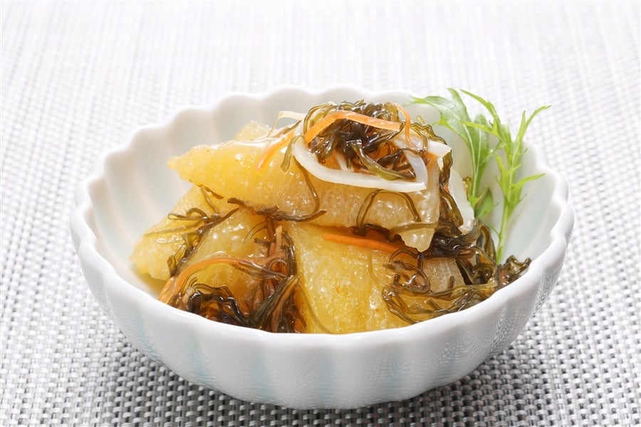 北海道名産の松前漬けに、歯ごたえのよい大粒の数の子をたっぷり和えました。白醤油で漬け込んでいるので、見た目も華やか! 上品な甘さに仕上げました。