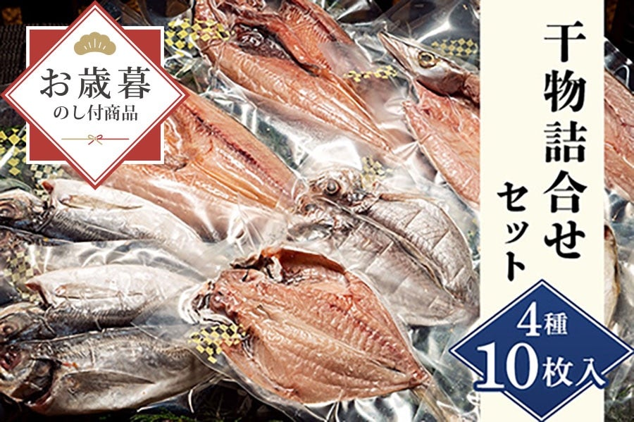 「干物の聖地」と呼ばれる静岡の沼津から、真あじ、かます、いぼだい、真ほっけの干物をお届けします。4種類の干物を10枚セット。ご自宅用、親しい方へのプレゼントにもおすすめです。