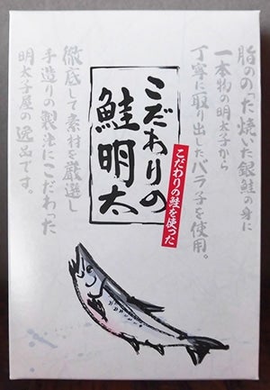 <原材料名>スケトウダラの卵(ロシア産)、銀鮭、食塩、発酵調味料、唐辛子、ぶどう糖、たん白加水分解物/調味料(アミノ酸等)、ソルビット、乳酸Ca、酸化防止剤(ビタミンC)、pH調整剤、着色料(黄5、赤102、赤106)、発色剤(亜硝酸Na)、酵素、(一部に小麦・大豆・さけを含む)