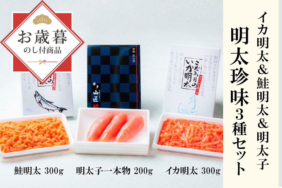 【お歳暮】博多の明太珍味3種セット(イカ明太子・鮭明太子・1本物 明太子)