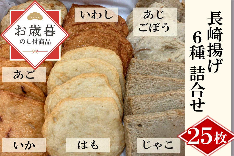 ・長崎揚げ6種詰め合わせ(25枚入)(じゃこ・いか・はも・いわし・あじごぼう・あご)