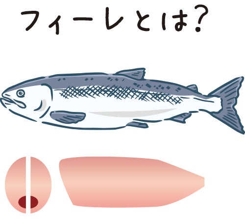 フィーレとは、サーモンを3枚おろしにした身の片側のことです。頭・骨・内臓を取り除き、皮付きの状態で真空パックしました。