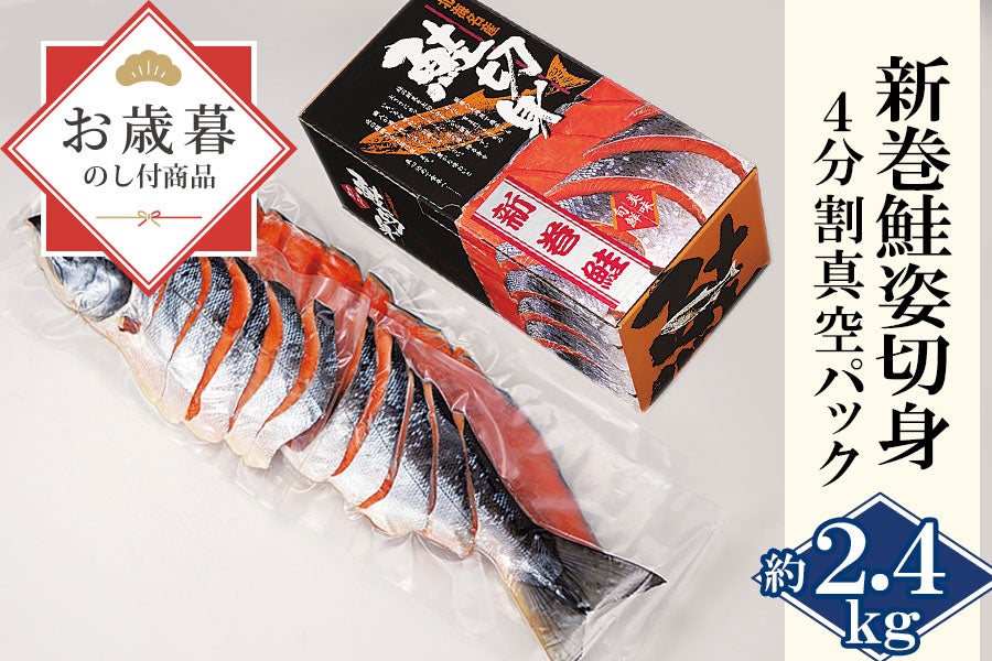 お正月の縁起物、新巻鮭です。4分割真空パックで保存しやすい&使いやすい!