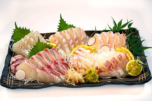 まずは何もつけずにそのまま食べてみてください。生臭さはほとんどなく、柑橘の香りと鯛の旨味をお楽しみいただけます。