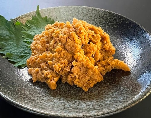 ギフト用や高級店向けの商品では、美しい黄金色の「うに」だけを使用するため、身が赤っぽいものは余ってしまいます。その赤っぽい「うに」だけを集めたのがこの【茜】です。