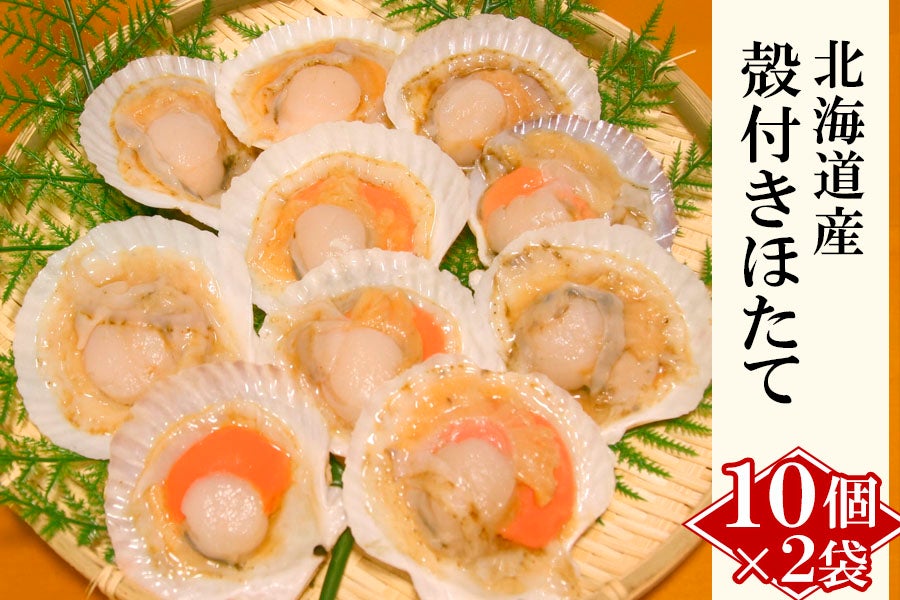 殻付きほたて20個(10個×2袋)北海道産 片貝 加熱用 冷凍ホタテ バーベキュー・鉄板焼きに