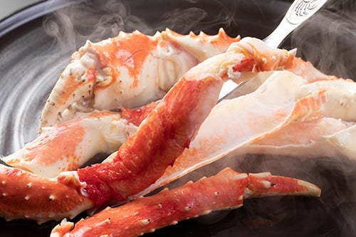 たらばがには、肉厚でプリッとした弾力ある食感が魅力。ひとくち頬張れば、濃厚な旨みが口いっぱいに広がり、豪快に食べる楽しさを実感できます。