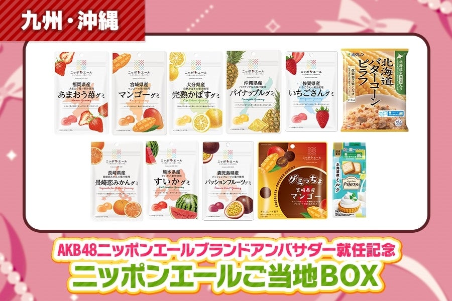 AKB48がニッポンエールブランドアンバサダーに就任!これを記念して各地のニッポンエール商品が詰まったご当地BOXを限定販売します!こちらは【九州・沖縄】のご当地BOXです!オリジナルグミポーチも付いてくる!