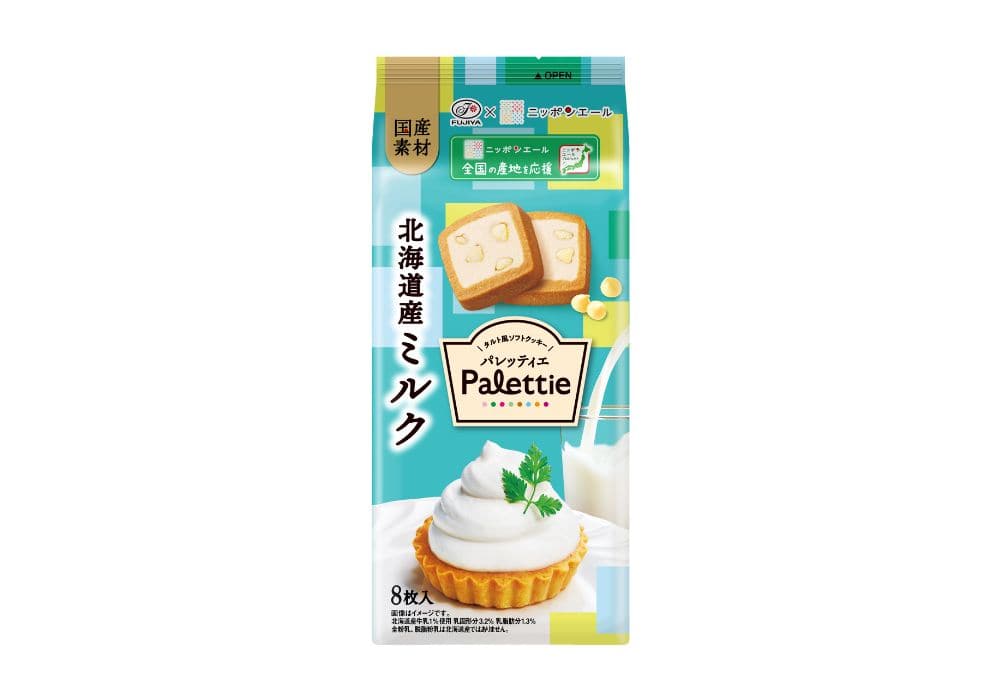 北海道産牛乳を使用した、タルト風ソフトクッキーです。国産の米粉を使用したしっとり生地に北海道産牛乳を練り込み、ホワイトチョコチップを合わせました。北海道産牛乳は、濃厚でコクがあり、すっきりとした後味が特徴です。タルトをイメージしたサクホロ生地とミルクの濃厚な味わいをお楽しみください。