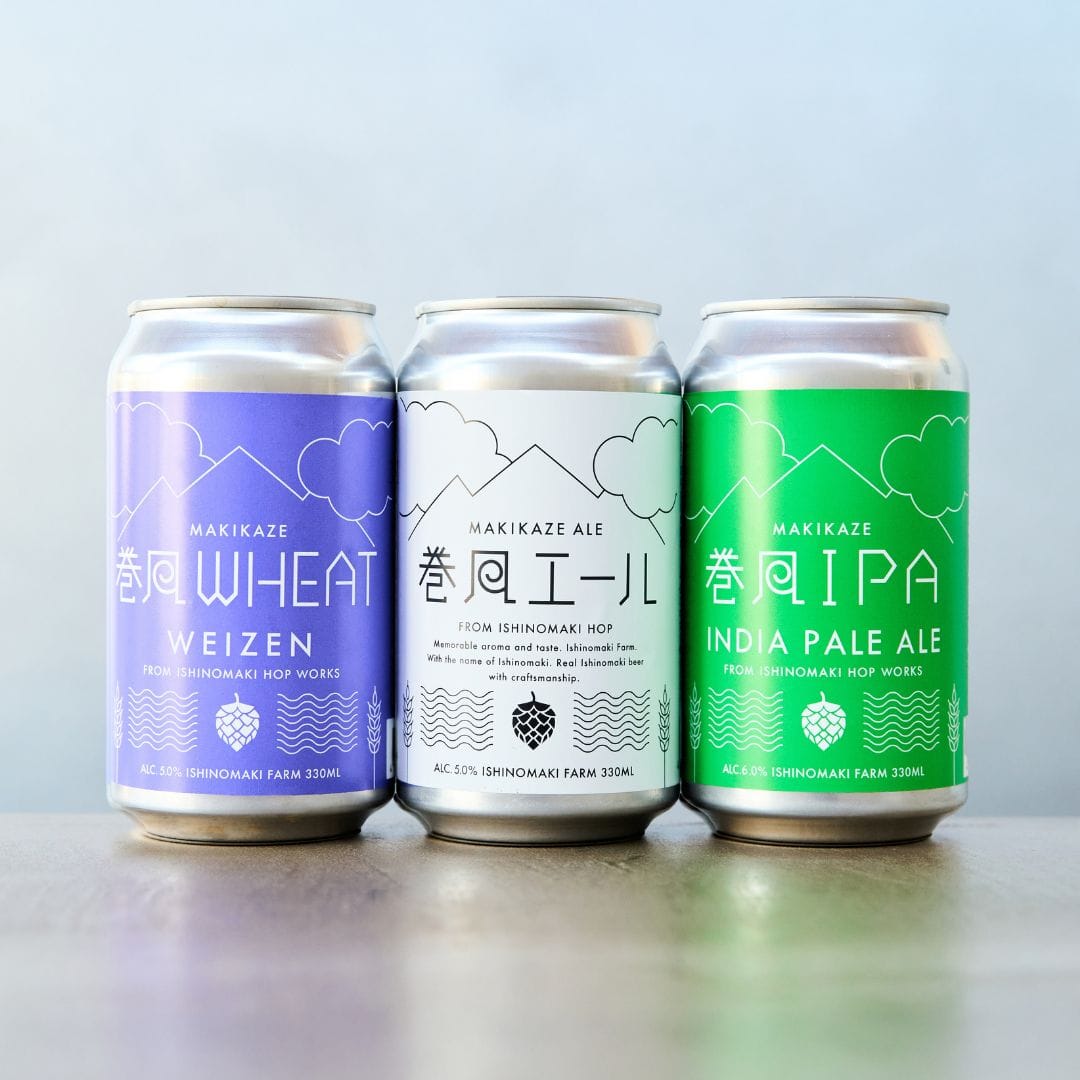 巻風シリーズ定番3種が(PaleAle IPA WEIZEN) 各種類が1本ずつ入っておりISHINOMAKI HOP WORKSの定番商品が楽しんで頂けます。