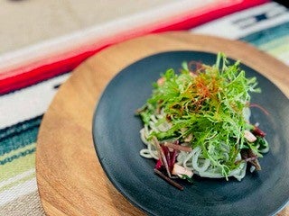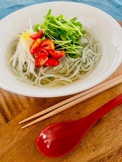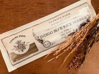 ■「インディゴブルーライスヌードル」の特徴 ・鮮やかな藍色と、生麺のような食感が特徴の、のど越しの良い米粉麺です。 ・温製・冷製どちらでもおいしく、和・洋・中のあらゆる麺料理に使用できます。 ・原材料は新潟県産米粉、コーンスターチ(遺伝子組み換えでない)、藍粉(有機)のみで、シンプルに作られています。 ・グルテン(小麦)不使用で、28品目アレルゲンを含みません。 ・保存料や色素はもちろんの事、グルテンフリー麺に良く使われる海藻由来のアルギン酸エステル(食品添加物)も不使用です。 ・有機JAS認証を取得した工場で生産されています。