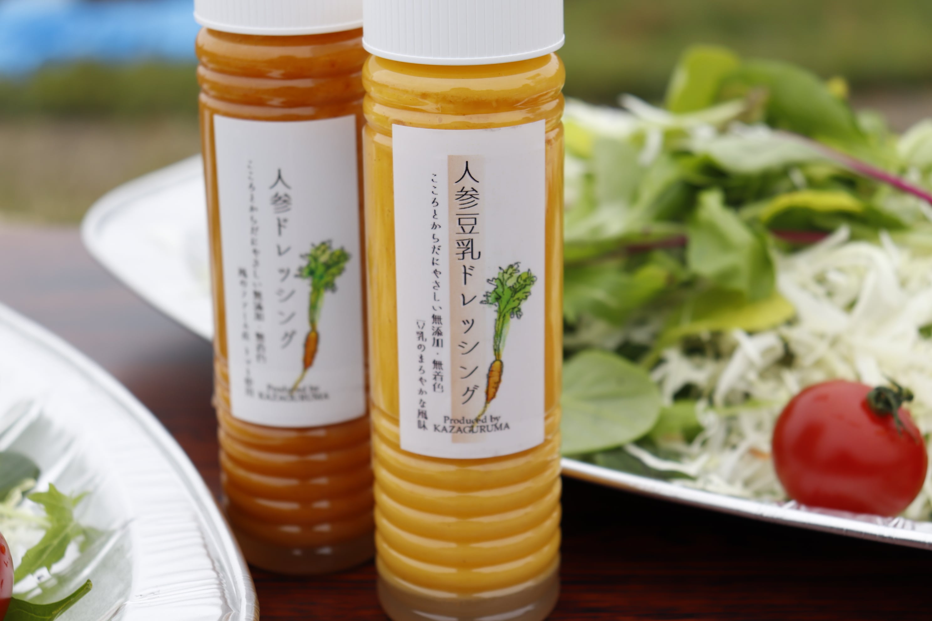いこま福祉会「風のファーム」のとれたて人参をふんだんに使用した野菜本来の味を活かした自然派ドレッシングです。 無添加・無着色のこころ と からだに やさしいドレッシングです。 人参ドレッシング3本・人参豆乳ドレッシング2本のセットでお届けします。