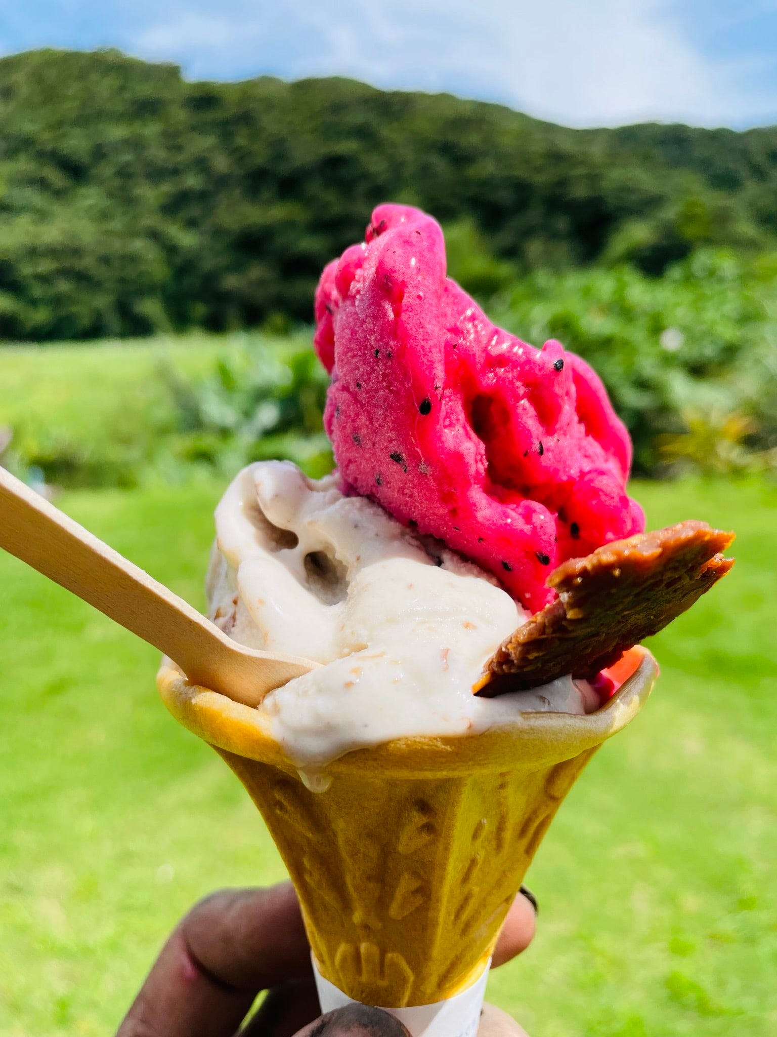 奄美群島の旬の素材を丁寧に下ごしらえし、ふわふわで滑らかな口どけ感、奄美ならではのフレーバーを大事にしたラインナップです。フルーツ系は果汁を約50%使用した、他では味わえないリッチな味わいに仕上がっています。要冷凍(-18℃以下) 8つのフレーバーは、魅惑のドラゴン&パッションフルーツ、ほどけるたんかん、黒糖の極み、塩バニラ、ハニーショコラ 紺、碧のチョコミント、ましゅキャラメル、月桃になります。紺碧のチョコミントはバタフライピーを使って色を出しています。