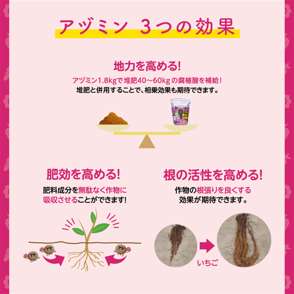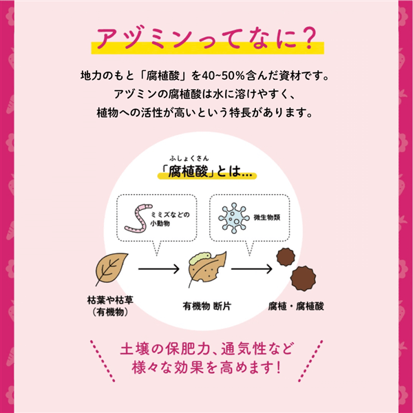 プロ農家が使っている「アヅミン」に小さなサイズで登場!腐植酸の効果で作物やお花を元気にします!