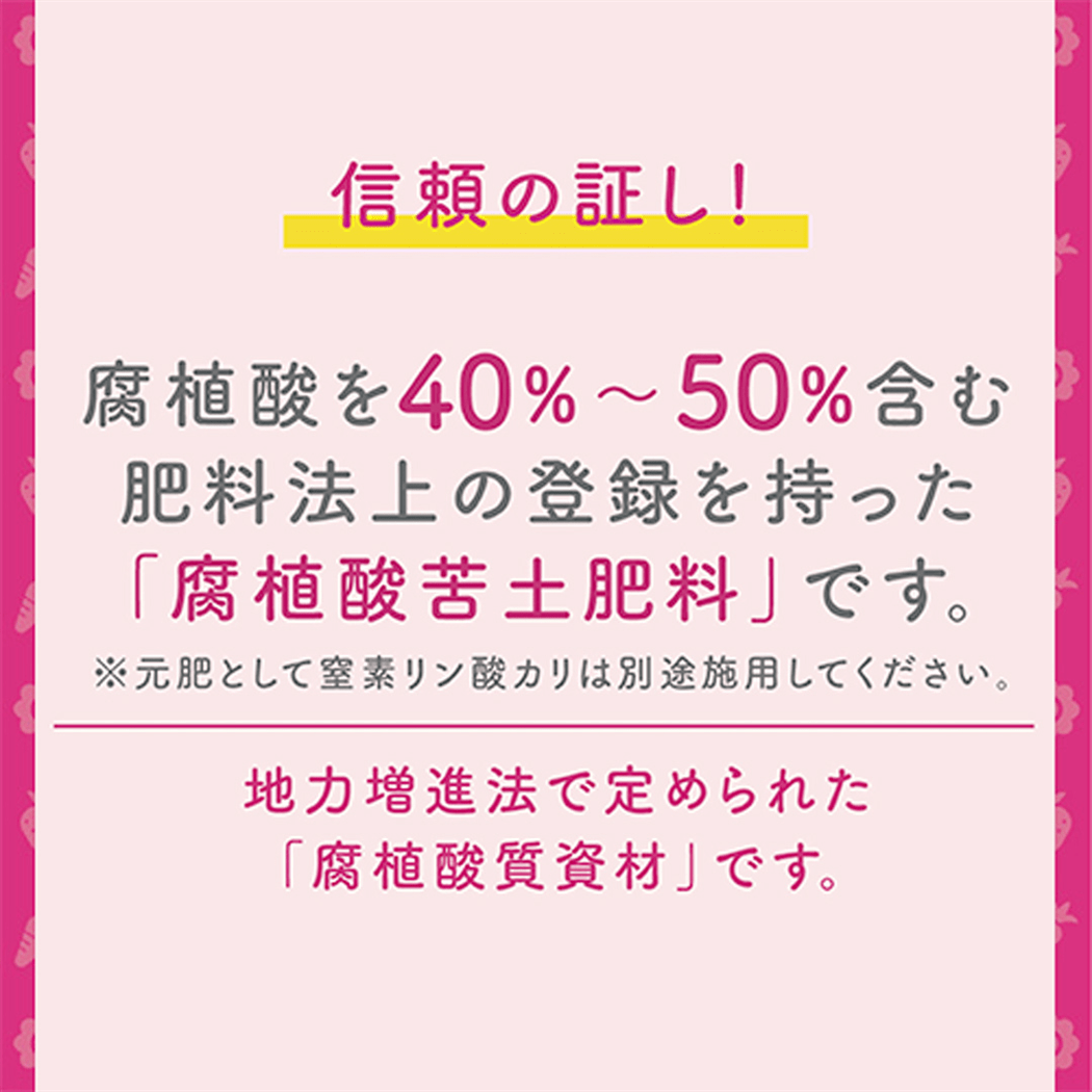※本肥料の成分は苦土(マグネシウム)と腐植酸です。チッソ・リン酸・カリは別途施用してください。