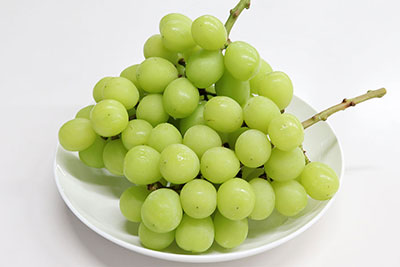 シャインマスカットは「安芸津21号」と「白南」の交配品種です。糖度が高く、マスカット香があります。種なしで皮ごと食べられます。 長野県ではシャインマスカットの冷蔵技術が確立されています。10月収穫したシャインマスカットを適切な状態で冷蔵貯蔵することで、冬でもしっかりした品質を保つことができます。